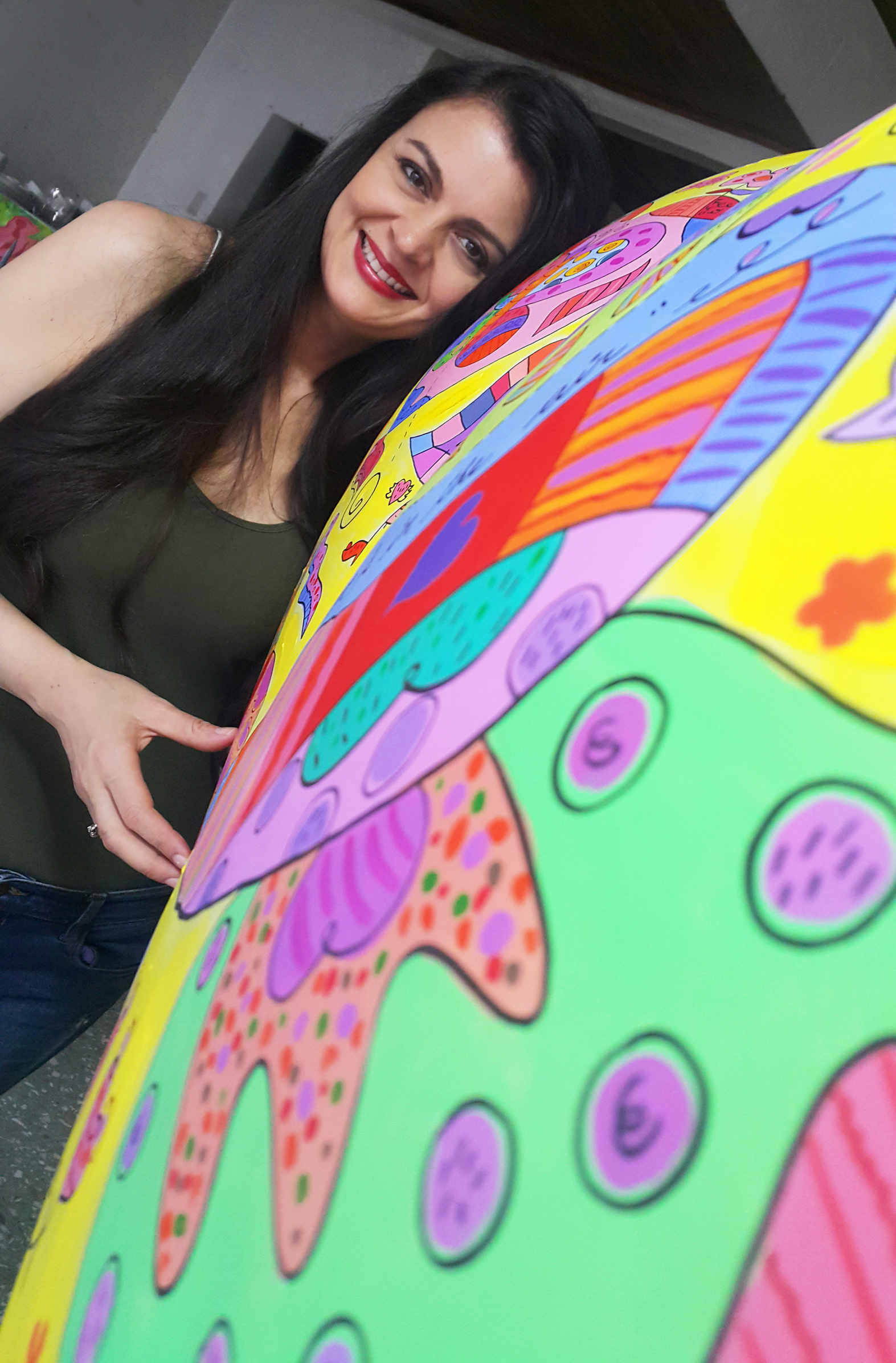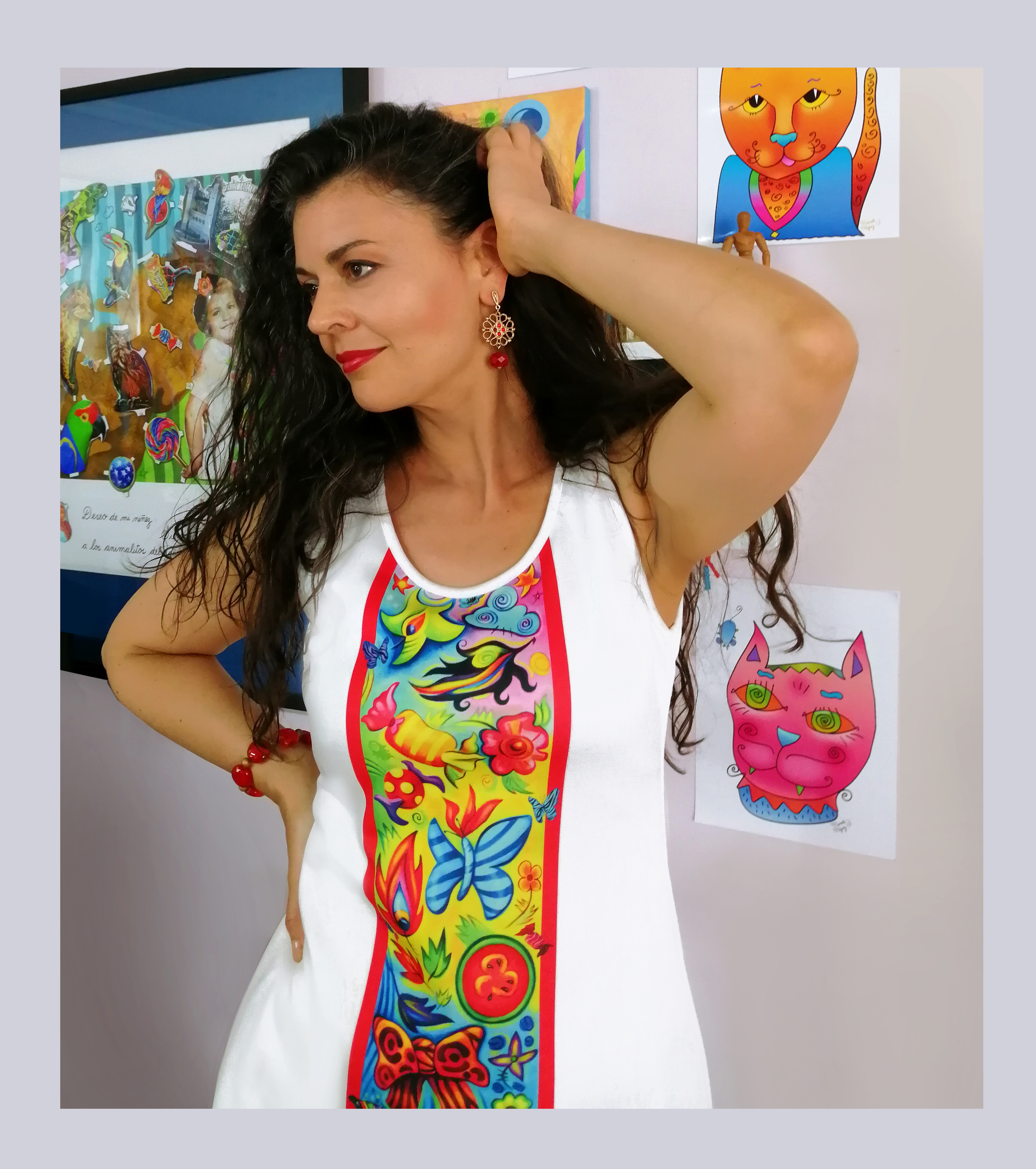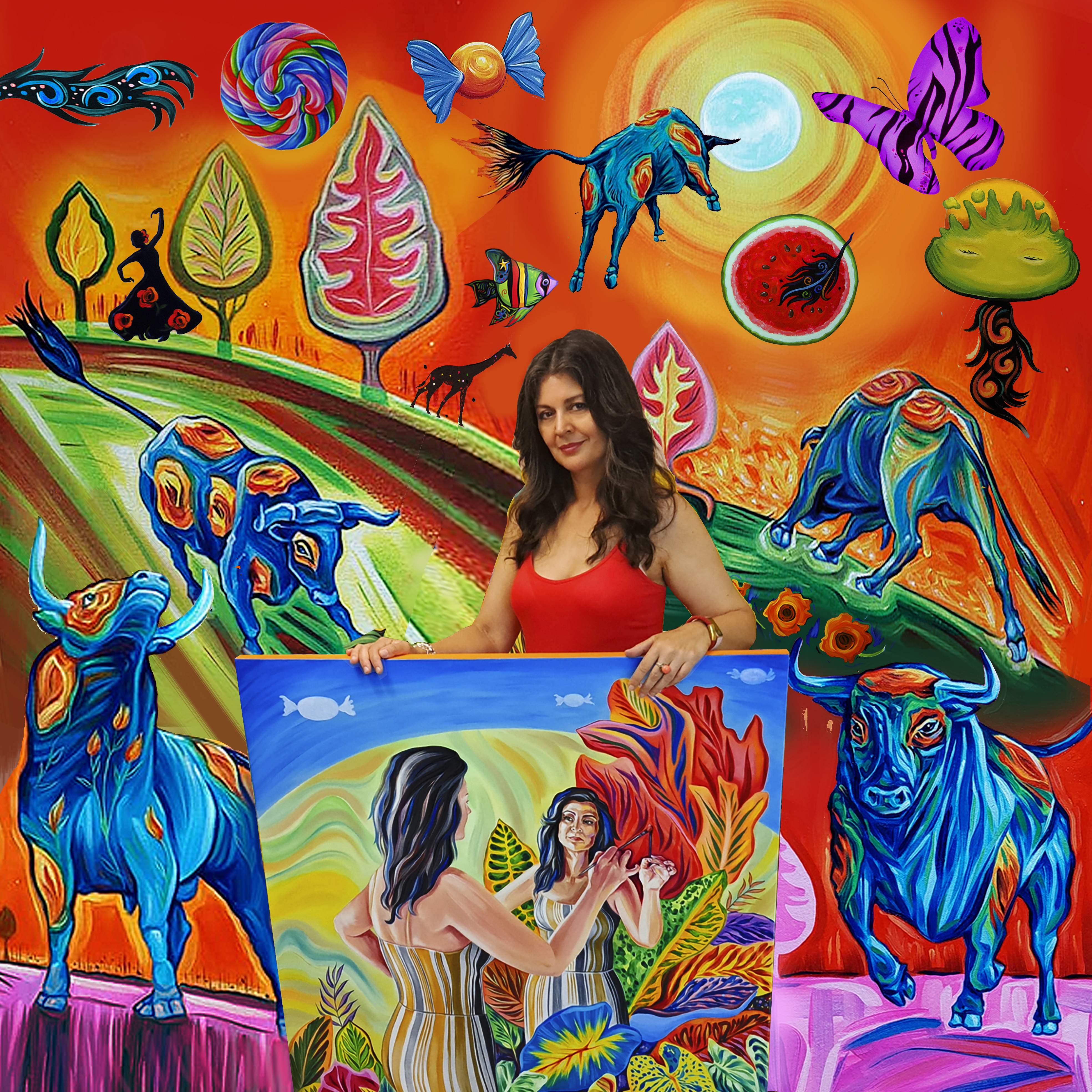 “Invito a las personas a unirse a mi fiesta artística contemplando mis creaciones y adentrándose en mis maravillosos mundos, llenos de alegría, colorido y positivismo”, comenta la artista plástica Manola Míguez, a quien su amor por la vida y la naturaleza la lleva a crear mundos con perfecta armonía entre lo fantástico y lo real a través de un lenguaje contemporáneo. Dueña de una paleta de brillantes colores cálidos con los que logra exquisitos contrastes en cada uno de los elementos pictóricos que conforman su obra. “Todos los colores son mis preferidos, porque en mis obras, todos se necesitan entre sí”, asegura la artista.