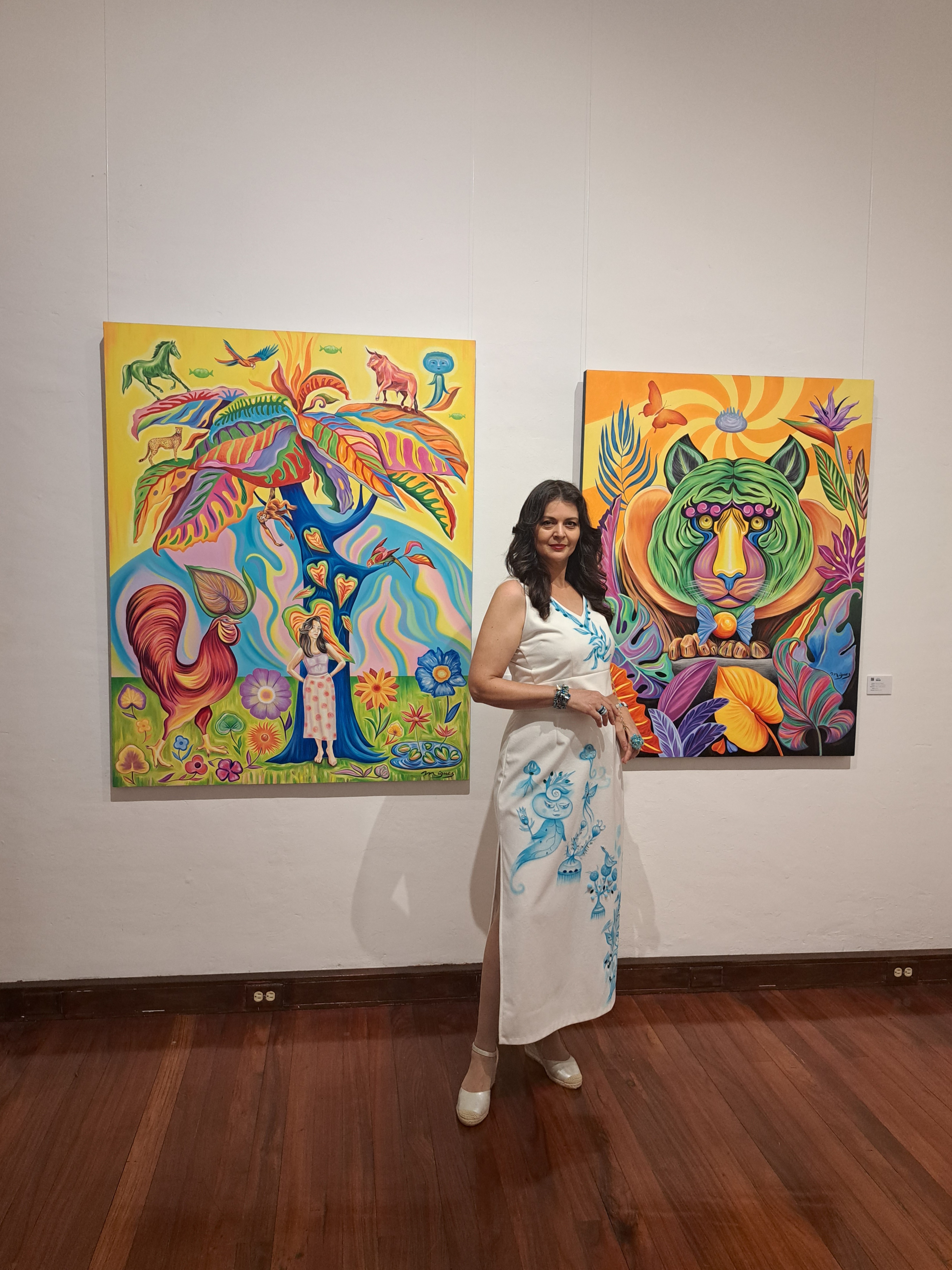 Cada una de sus pinceladas va construyendo un festejo de matices y emociones. Los animales son los protagonistas y sus fieles compañeros de viaje, que le inspiran la belleza y alegría que quiere transmitir.