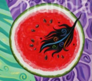 Siempre hablo a mis alumnos de la importancia en el manejo de la paleta, donde más que preocuparse por la cantidad de colores en ella, debe haber una consistencia en la disposición de estos sobre el lienzo. Manola me sorprende, ya que aunque ella tenga, como es normal en cada persona, preferenceia por uno o dos colores como me supongo, se muestra a sí misma, muy generosa al momento de utilizarlos, como queriendo decirnos que todos los colores son sus favoritos. Es por ello que su obra brilla con tenacidad, dando alegres giros que van desde sus fríos azules hasta sus cálidos tonos rojos y naranjas, entrelazados todos en un intenso diseño donde el toro, el pavo real, el confite, la sandía, el gallo, las flores nos retratan a una artista enamorada del color, la forma y la naturaleza, curiosamente terrenal sí, pero fantástica en su atrevido mundo multicolor. Recuerdo que al momento de apreciar sus colores, me sentí aleccionado. En el terreno emocional, Manola logra mostrarse como una artista que sabe involucrar sus vivencias personales en su obra, algo que siempre he defendido ante mis alumnos. Ella habla de lo cotidiano en la parte figurativa de sus obras y ello nos conduce directo a sus emociones, tal vez recuerdos donde todos los sentidos irrumpen dimensionando un mundo personal, bien logrado, Porqué bien logrado? Porque ella pinta sobre la base de su propia experiencia, sus vivencias, no las de otro, las suyas propias y eso le da amplio dominio de lo que quiere expresar. Cuando un artista intenta pintar el mundo de otros, lo que no vieron sus ojos, todo queda en el intento, ese no es de ninguna manera, el caso de Manola. Si un artista al despertar en las mañanas abre la ventana de su cuarto para ver el gran océano al frente de su casa, su obra futura probablemente proyecte ese mundo de una u otra manera. Manola no dejará de producir y de sorprender, cuanto almacén creativo tiene por ofrecer, la verdad mejor será disponer mis sentidos. Gracias artista.